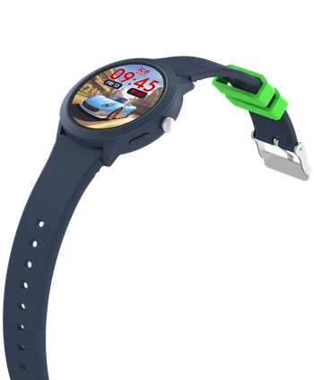 Visuellement, la montre est réussie. Elle est compacte, bien proportionnée pour un poignet d’enfant, agréable au toucher, avec un bracelet doux et confortable. Le modèle testé est bleu, mais il existe aussi en rose et en mauve. L’écran peut être configuré pour un port au poignet droit ou gauche, ce qui est un vrai bon point en termes d’ergonomie, notamment pour les enfants gauchers.